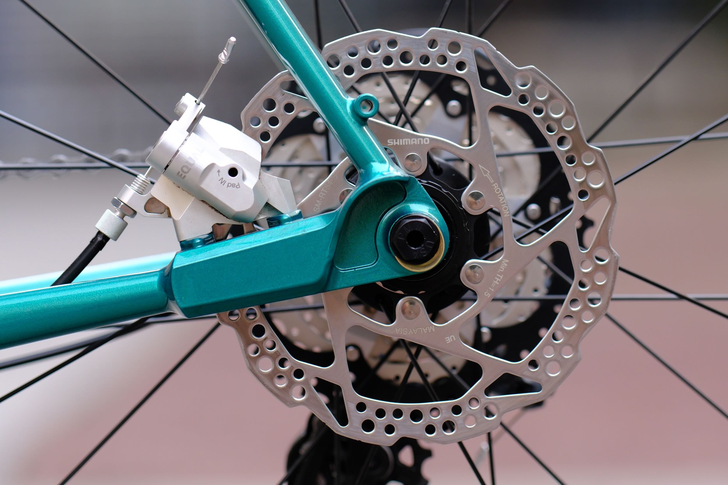 Le cadre est réalisé en tubes Columbus Zona et Deda Zero Uno. Il est associé à une fourche à raccord moderne, avec un té de fourche compatible avec le montage de garde-boue d’une largeur de 60mm, et des fourreaux Reynolds spécialement dimensionnés pour une freinage à disques.