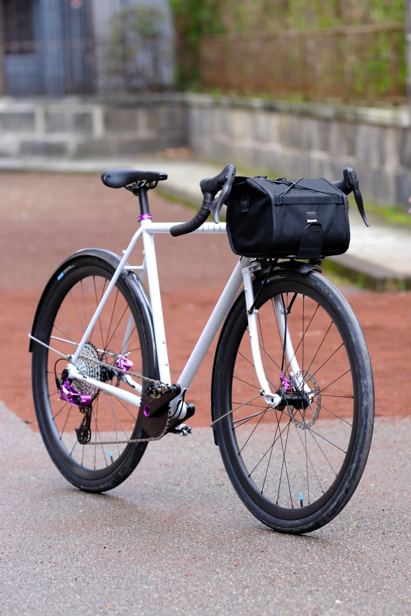 - Les bases, fabriquées spécialement par Dedaccicai en Italie pour Distance, présentent un double cintrage pour accueillir sans problème le garde-boue d’une largeur de 55 mm ou des pneus de gravel en 45 mm.