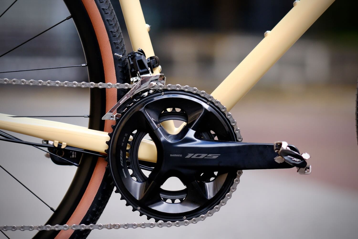 Blanc nacré : une finition claire aux frontières du gris, avec ajout d’une nacre très légèrement bleutée. Ce blanc ne vous sera peut-être pas étranger si vous suivez notre travail depuis longtemps. C’est avec cette exacte référence que nous avons peint plusieurs Victoire (notre marque de vélos sur mesure) au fil des ans.