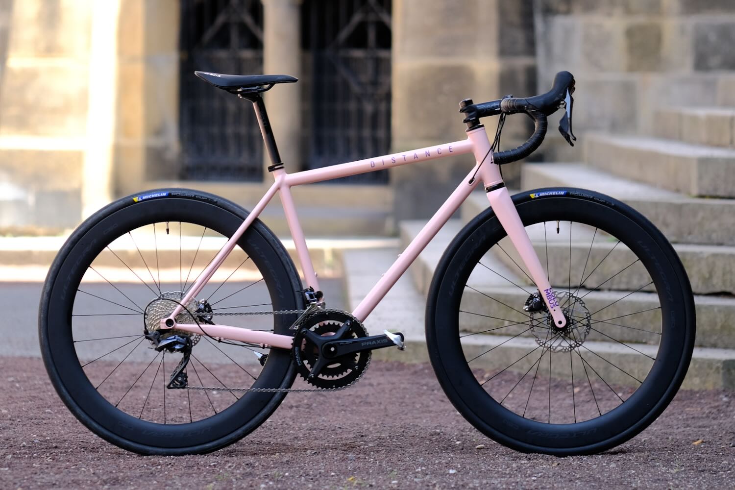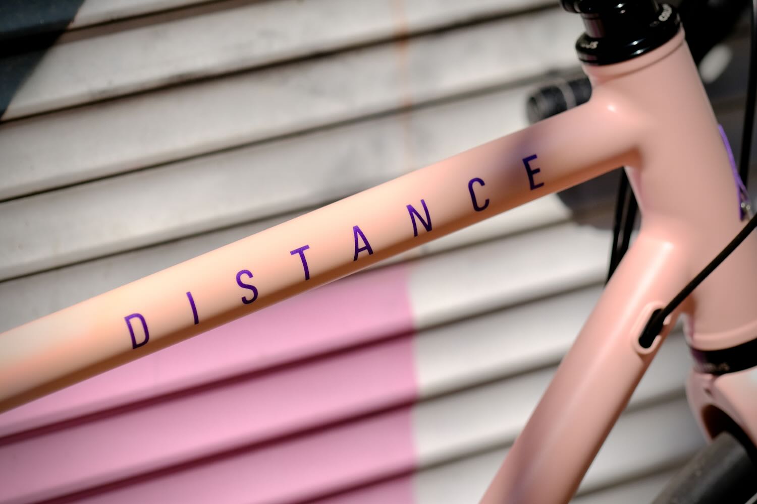 Rose Coquille : vous ne le savez pas, mais l’équipe Distance compte pas moins de trois guitaristes. Quelle ne fut pas leur surprise en découvrant que le système permettant de créer les teintes de peinture contenait les formules d’un célèbre fabricant américain de guitares. Il n’a pas fallu longtemps pour que l’une de ces couleurs finissent sur un vélo Distance.